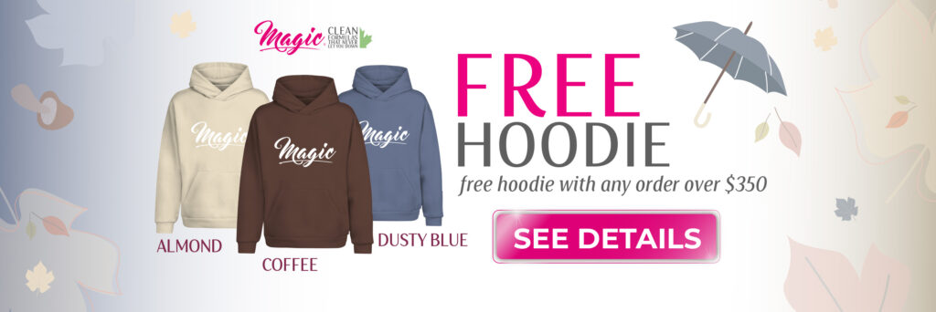 Stay cozy while you work some Magic! With any $350 purchase before tax, you’ll score a FREE Magic hoodie in your choice of Almond, Coffee, or Dusty Blue—the perfect fall shades.